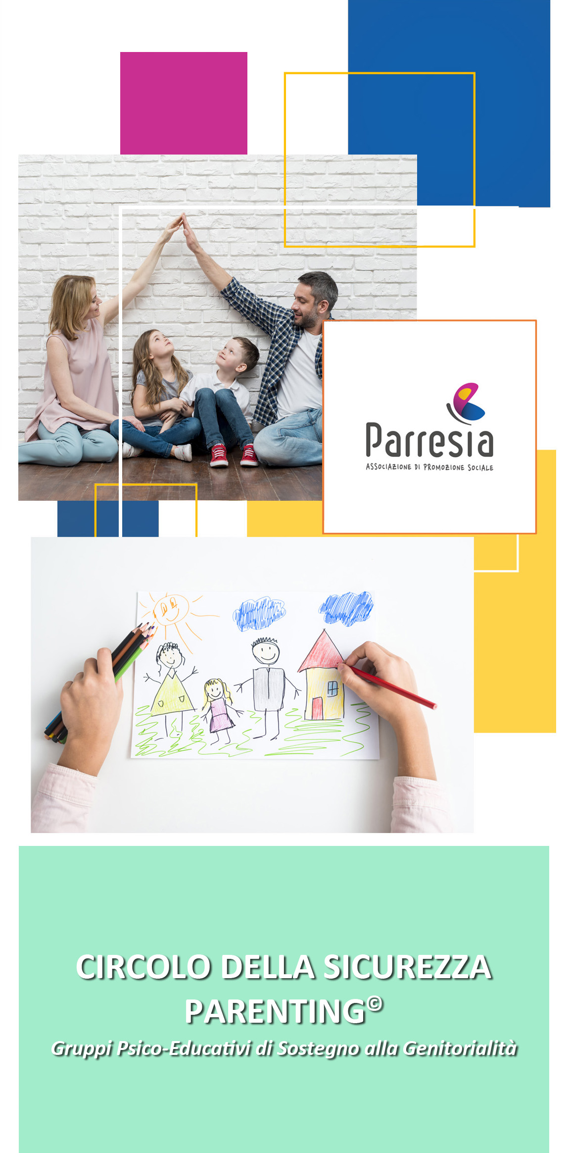 Si propone di aiutare i Genitori a riconoscere pienamente ed a rispettare il bisogno di connessione in sé stessi e nei propri bambini ricevendo informazioni psico-educative direttamente da uno Psicologo appositamente formato ed abilitato alla conduzione di interventi secondo il modello del "Circolo della Sicurezza"®.